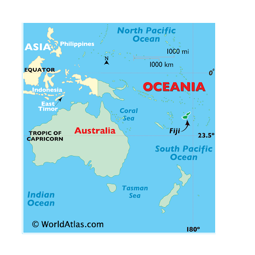 It lies about 1100 nautical miles 2000 km. Fiji is one of nearly 200 countries illustrated on our Blue Ocean Laminated Map of the World. Lying on the air route from Australia to the west coast of the USA Fiji is well served by flights and is attracting an increasing number of tourists.